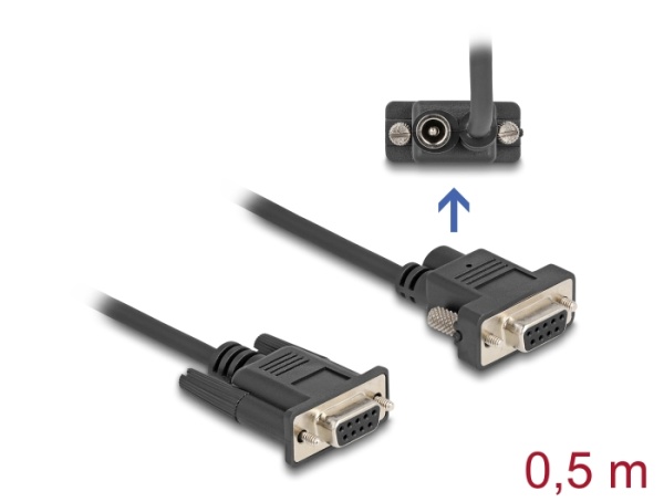 Delock Sériový kabel ze zásuvky RS-232 D-Sub9 na zásuvku D-Sub9, napájení na pinu 9, délka 0,5 m