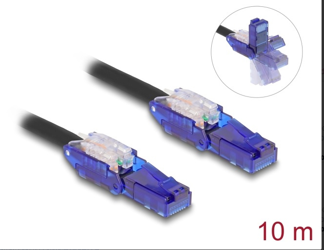 Delock Síťový kabel RJ45, Cat.6, UTP, s výklopnými zástrčkovými konektory (180°), 10 m