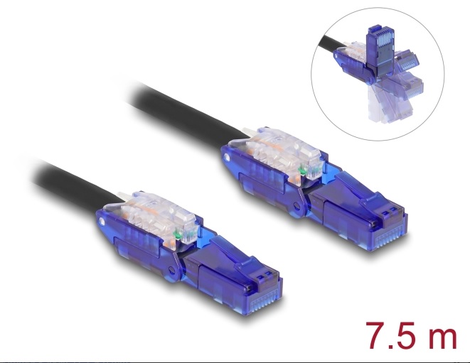 Delock Síťový kabel RJ45, Cat.6, UTP, s výklopnými zástrčkovými konektory (180°), 7,5 m