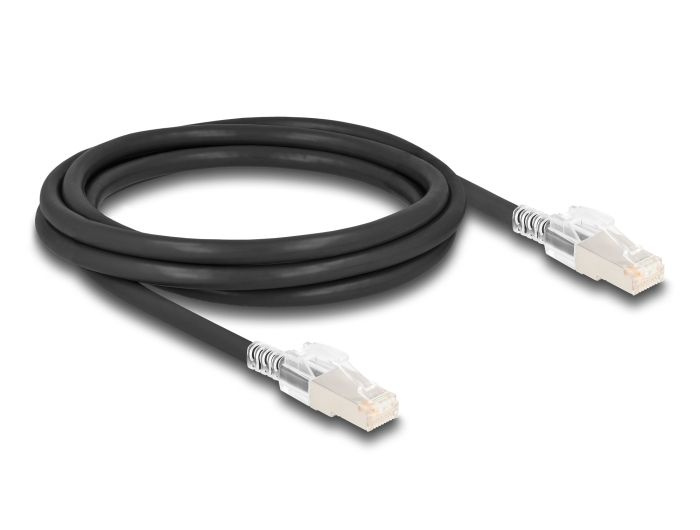 Delock Síťový kabel RJ45 Cat.6A S/FTP se sadou bezpečnostních sponek, 2 m dlouhý, černý