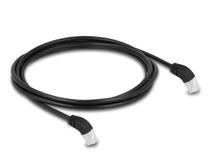 Delock Síťový kabel RJ45 Cat.6A S/FTP, zalomený dolů o 45°, 2 m, černý