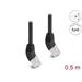 Delock Síťový kabel RJ45 Cat.6A S/FTP, zalomený nahoru o 45°, 0,5 m, černý