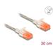 Delock Síťový kabel RJ45, Cat.6A, U/UTP, tenký, 0,3 m, transparentní
