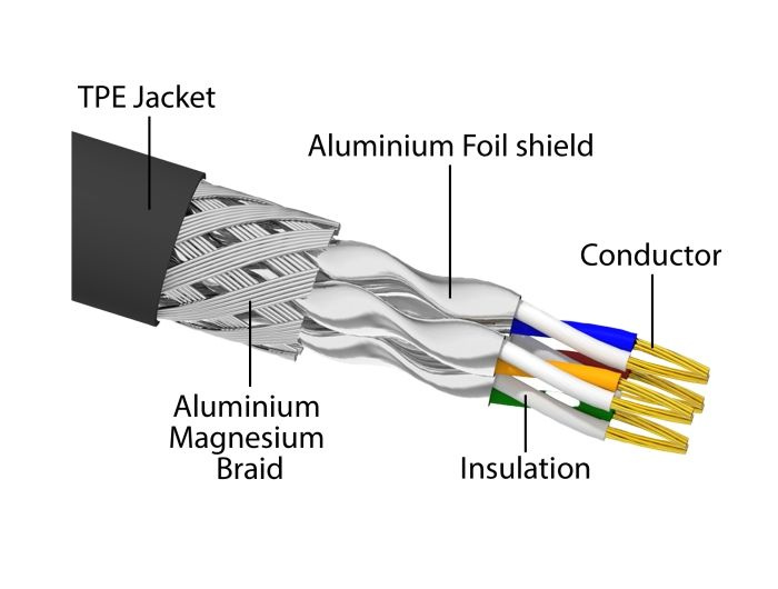 Tento síťový kabel je ideální k používání venku a nabízí zvýšenou odolnost proti ultrafialovému záření, chladu, horku, vlhkosti a korozi. Dále má zvýšenou odolnost proti ohýbání a je ideální k užívání v průmyslových prostorech.