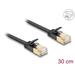 Delock Síťový kabel RJ45 Cat.6A, ze zástrčky na zástrčku,s robustní západkou a hrubým plochým kabelem Cat.7,U/FTP, 0,3 m