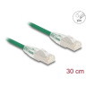 Delock Síťový kabel RJ45 Cat.6A, ze zástrčky na zástrčku, se zahnutou západkou, U/FTP, tenký, 0,3 m, zelený