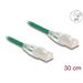 Delock Síťový kabel RJ45 Cat.6A, ze zástrčky na zástrčku, se zahnutou západkou, U/FTP, tenký, 0,3 m, zelený