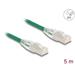 Delock Síťový kabel RJ45 Cat.6A, ze zástrčky na zástrčku, se zahnutou západkou, U/FTP, tenký, 5 m, zelený
