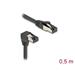 Delock Síťový kabel RJ45 Cat.8.1 S/FTP, zalomený dolů o 90° / přímý, 0,5 m, černý
