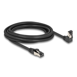 Delock Síťový kabel RJ45 Cat.8.1 S/FTP, zalomený dolů o 90° / přímý, 3 m, černý