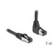 Delock Síťový kabel RJ45 Cat.8.1 S/FTP, zalomený nahoru o 90° / přímý, 1m, černý