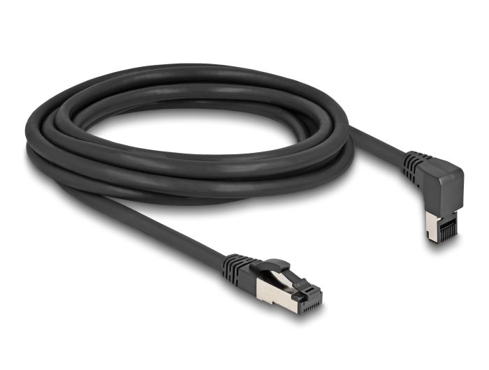 Delock Síťový kabel RJ45 Cat.8.1 S/FTP, zalomený nahoru o 90° / přímý, 3 m, černý