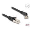 Delock Síťový kabel RJ45 Cat.8.1 S/FTP, ze zástrčky zalomené doprava 45° na přímou zástrčku, až 40 Gbps, 2 m, černý