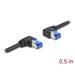 Delock Síťový kabel s konektorem RJ45 Cat.6A, S/FTP pravý / levý, pravoúhlý, délky 0,5 m, černý
