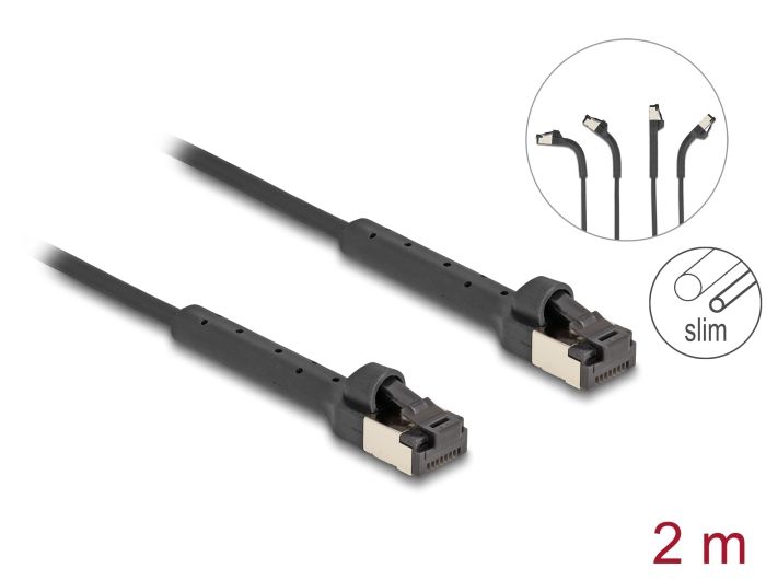 Delock Síťový kabel s rozhraním RJ45 Slim, Cat.8.1, U/FTP, ohebný, až 40 Gbps, černý, 2 m