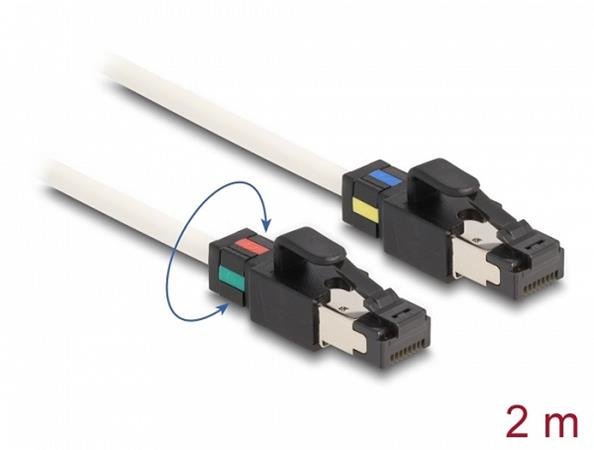 Delock Síťový kabel ze zástrčky RJ45 na zástrčku Cat.6A, S/FTP, s otočnými barevnými příchytkami, 2 m, bílá