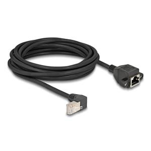Delock Síťový prodlužovací kabel ze zástrčky S/FTP RJ45, pravoúhlý (90°), na integrovanou zásuvku RJ45, Cat.6A, 5 m, černý