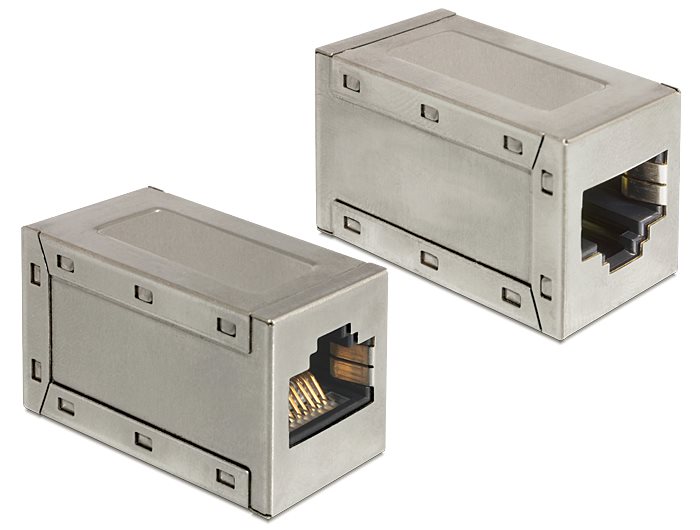 Tato RJ45 spojka od Delocku může být použita např. jako spojka dvou kabelů pro prodloužení síťového spojení.