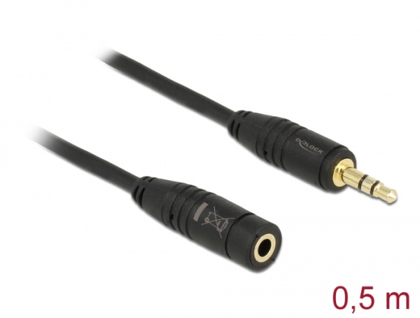 Delock Stereo Jack Extension Cable 3.5 mm 3 pin male > female 0.5 m black