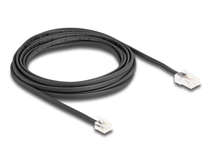 Delock Telefonní kabel RJ45, ze zástrčky na zástrčku RJ11, černý, 5 m