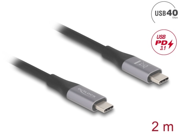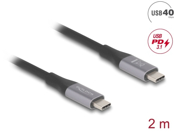 Delock USB 40 Gbps kabel USB Type-C™ samec na samec PD 3.1 240 W E-Marker 2 m šedá kovová