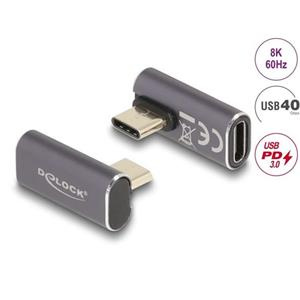 Delock USB Adaptér 40 Gbps USB Type-C™ PD 3.0 100 W samec na samice otočný pravoúhlý levý / pravý 8K 60 Hz kovová