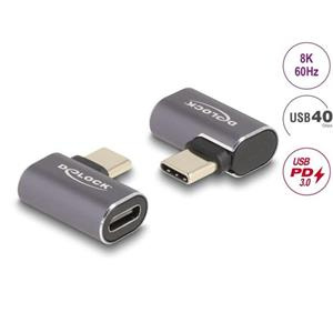 Delock USB Adaptér 40 Gbps USB Type-C™ PD 3.0 100 W samec na samice pravoúhlý levý / pravý 8K 60 Hz kovová