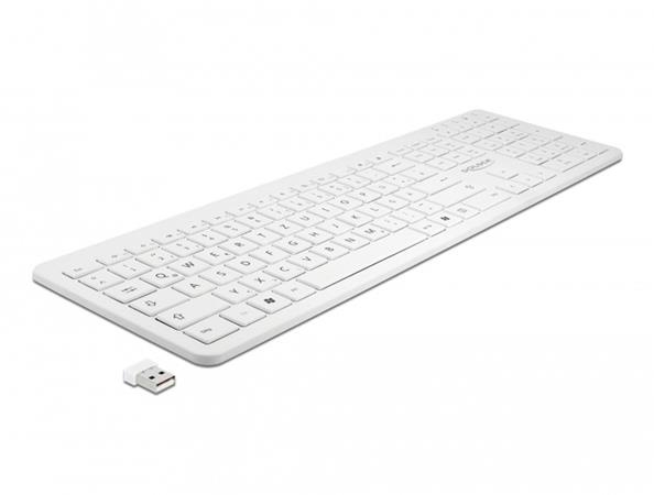 Delock USB klávesnice, bezdrátová, 2,4 GHz, bílá (plochá)