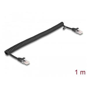Delock Vinutý kabel rozhraní RJ45, ze zástrčky na zástrčku, Cat.5e, 1 m, černý