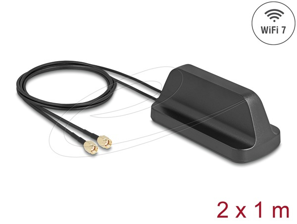 Delock WiFi 7 Anténa 2 x RP-SMA samec 2,4 - 4,0 dBi všesměrová s magnetickou základnou a připojovací kabel ULA100 1 m