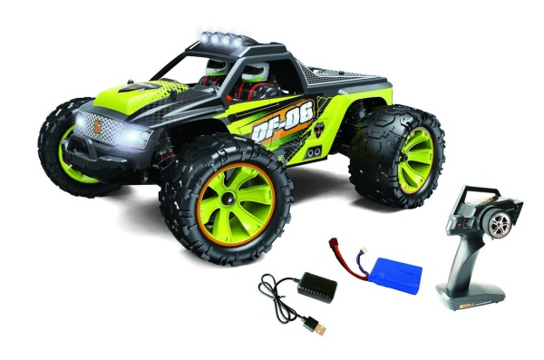 Terénní auto na dálkové ovládání DF06 EVOLUTION Truck 4WD 1:14Nekompromisní RC truck DF06 EVOLUTION 4WD 1:14 pracuje na frekvenci 2,4 GHz s plně proporcionálním ovládáním a profi podvozkem. Jak již název napovídá, truck má pohon všech 4 kol, kdy využívá velmi silný motor typu 550, který dokáže vyvinout rychlost až 60 km/h.RC auto s odolným podvozkemPodvozek má vážně ultimátní vlastnosti, kde základem je celohliníkový podvozek, příčné závěsy a olejové tlumiče z téhož materiálu. Dále jsou ve výbavě kovové hnací hřídele, zapouzdřená převodovka a na přední nápravě CVD poloosy zamezující vypadnutí při případné nehodě. Nedílnou součástí tohoto extrémně odolného podvozku je i systém Servo Saver, díky kterému se nemusíte bát poškození serva při nehodě.Do ovladače budete potřebovat 4 × AA baterie.Technické specifikace:Pohon 4 WD, motor typ 550Celohliníkový podvozekKovové hnací hřídeleZapouzdřená převodovkaPřední náprava s CVD poloosamiSystém Servo SaverOlejové ALU tlumičeDoba nabíjení cca 180 minut Obsah balení: RC truck DF06 EVOLUTION 4WD 1:14 Volantový ovladač 2,4 GHz, plně proporcionální Akumulátor 7,4V / 1500 mAh Nabíjecí kabel USB Návod k použití Technické parametry: Měřítko: 1/14 Konstrukce auta: monster Délka auta: 30.5 Šířka auta: 23.5 Výška auta: 13.5 Hmotnost auta: 1000 Auto je vhodné na ven: ano Barva: zelená Auto je vhodné do interiéru: ano Rychlost auta: 60 Kapacita akumulátoru v autě: 1500 Napětí akumulátoru v autě: 7.4 Typ akumulátoru do auta: Li-Po Typ nabíječky: USB Výměnný akumulátor v autě: ano Napájení ovladače k autu: 4xAA Doba jízdy auta: 7 Dosah ovládání auta: 100 Frekvence ovládání RC auta: 2,4Ghz Konstrukce ovladače k autu: Pistolový Plynulá regulace rychlosti: ano Plynulá řízení zatáčení: ano