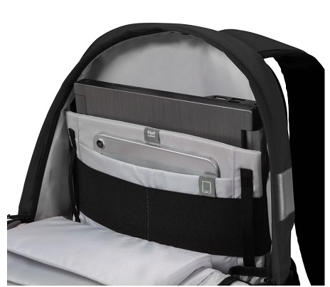 Přední přihrádka se třemi univerzálními síťovanými kapsami a polstrovanou přihrádkou na příslušenství