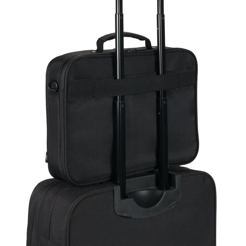 Tato taška kombinuje bezpečnost a funkčnost s uzamykatelnou, polstrovanou přihrádkou na notebook, která nabízí optimální ochranu díky zesílenému rámu. Přední kapsa je speciálně navržena pro mobilní příslušenství a kapsa na zip poskytuje úložný prostor pro napájecí adaptér a kabely. Skrytá přihrádka na GPS tracker vám umožní mít tašku neustále pod dohledem, zatímco kapsa na zip s RFID blokátorem chrání osobní data před neoprávněným přístupem. Důležité dokumenty lze bezpečně uložit do kapsy na dokumenty na zadní straně, zatímco polstrovaný ramenní popruh zajišťuje pohodlné nošení. Tašku lze snadno připevnit ke kufru pomocí popruhu na vozík. Vak je zakončen vodoodpudivým materiálem, který spolehlivě ochrání obsah před povětrnostními vlivy.