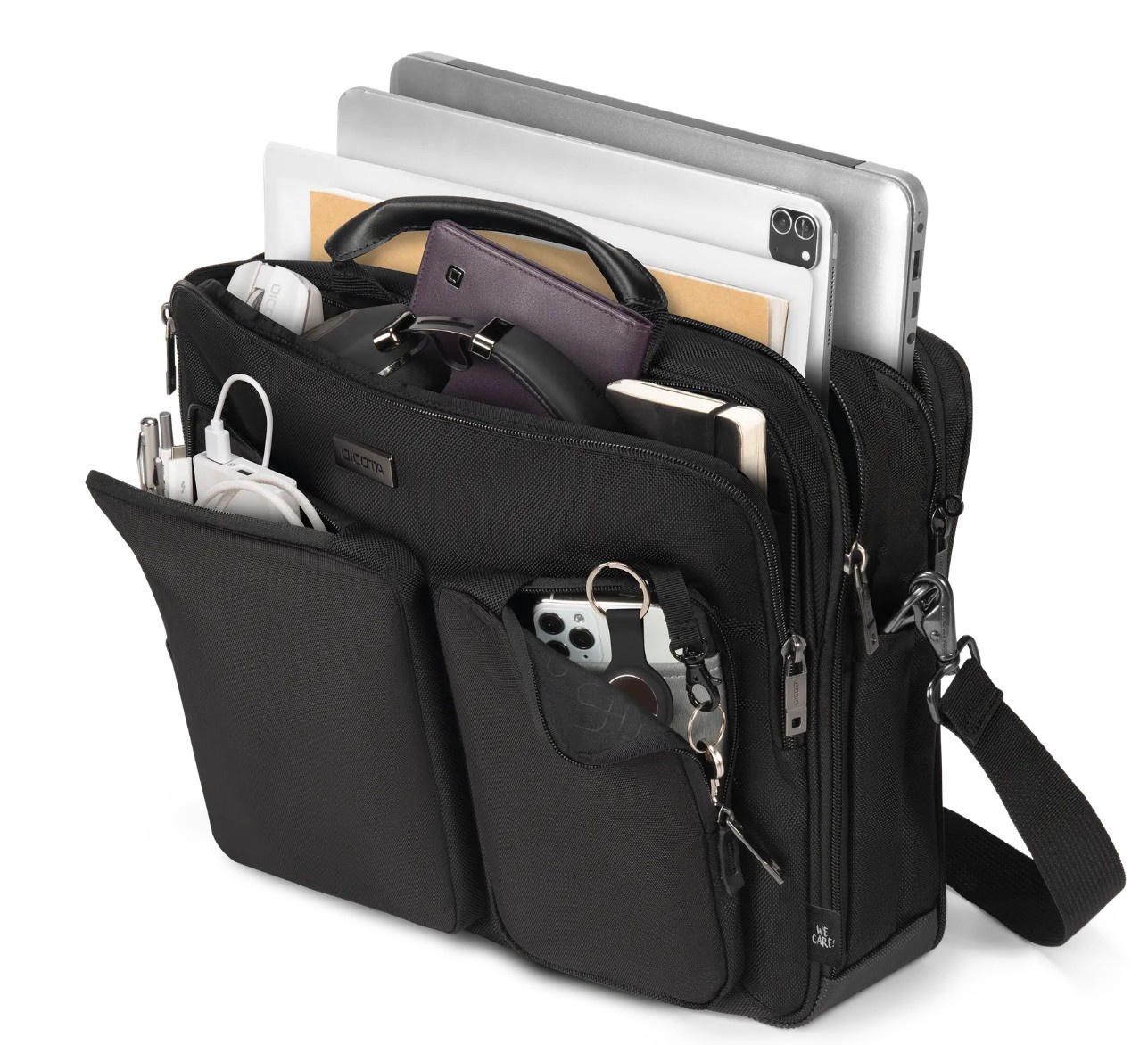 Taška je navržena pro prvotřídní ochranu a praktickou funkčnost a je vybavena technologií DICOTA Cushion Technology pro maximální bezpečnost zařízení, vestavěným RFID stíněním pro ochranu citlivých dat a speciální přihrádkou pro tracker pro větší bezpečnost.