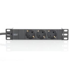 Digitus 1U Hliníkový PDU, 254 mm (10 ") montáž do stojanu 3x bezpečnostní vývod, 16A, 4000W, 250VAC 50/60 Hz