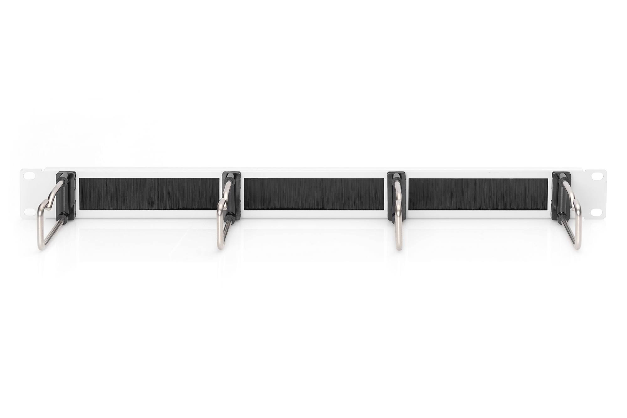 Digitus 1U kabelový spravovací panel s kartáčem 4x ocelové kroužky 40x75 mm, šedá (RAL 7035)