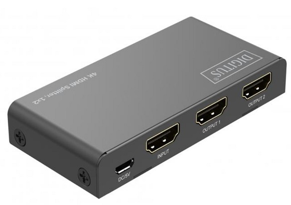 DIGITUS® HDMI Splitter rozděluje/zrcadlí audio a video signály vašeho HDMI zařízení na dvou televizorech, monitorech nebo projektorech s rozlišením max. 4K / 60 Hz.