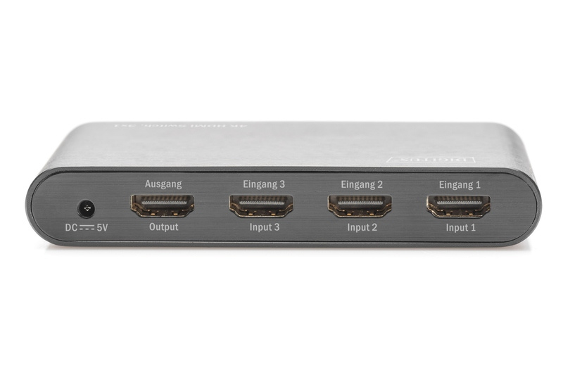 Přepínač Digitus 4K HDMI 3x1 umožňuje pohodlně přepínat mezi 3 vstupními zdroji HDMI (DVD / Blu-Ray Player, herní konzole, streaming boxy , digitální přijímače atd.) Pomocí dálkového ovládání, inteligentního automatického rozpoznávání nebo alternativně přepínáním samotný spínač. Potíže s připojováním kabelů jsou minulostí. Díky podpoře Ultra HD 4K (60 Hz) zažijte svůj mediální obsah v brilantně ostrém rozlišení.