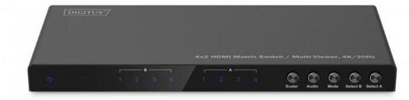 DIGITUS 4x2 HDMI Matrix / Multi-Viewer, 4K/30Hz SPDIF, Stereo, RS232