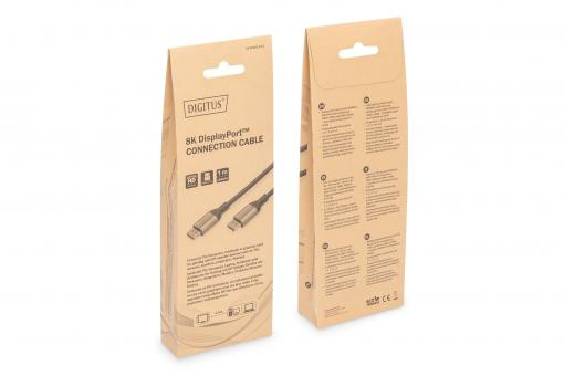 DIGITUS 8K @ 60Hz; DP tp DP Connectioncable; DP 1.4 Alu Housing; Black; 1m