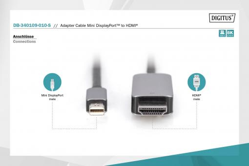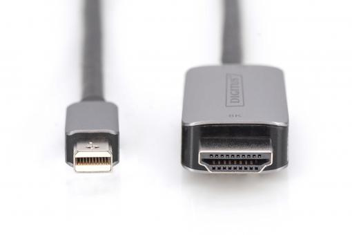 Digitus 8K@60Hz. M/M; mini DP na HDMI; kabeový adaptér Alu Pouzdro; Černý; 1m