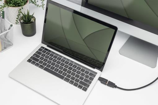 Adaptér DIGITUS® 4K USB-C umožňuje připojení notebooku nebo tabletu k monitoru, projektoru nebo televizoru k připojení USB-C™. Nejsou potřeba žádné další adaptéry. V závislosti na zdrojovém zařízení tento adaptér podporuje rozlišení až 4K / 3840 x 2160 s obnovovací frekvencí displeje 30 Hz včetně .3D a podporou ARC.