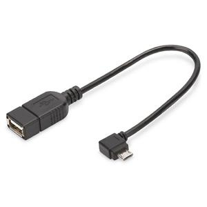 Digitus Adaptérový kabel USB 2.0, OTG, typ micro B - A M / F, 0,15 m, USB 2.0 v souladu, pravý úhel, bl