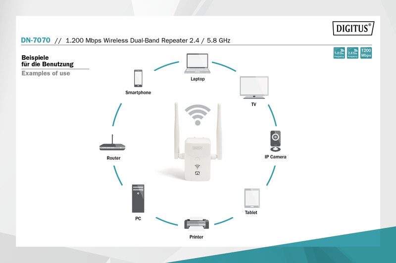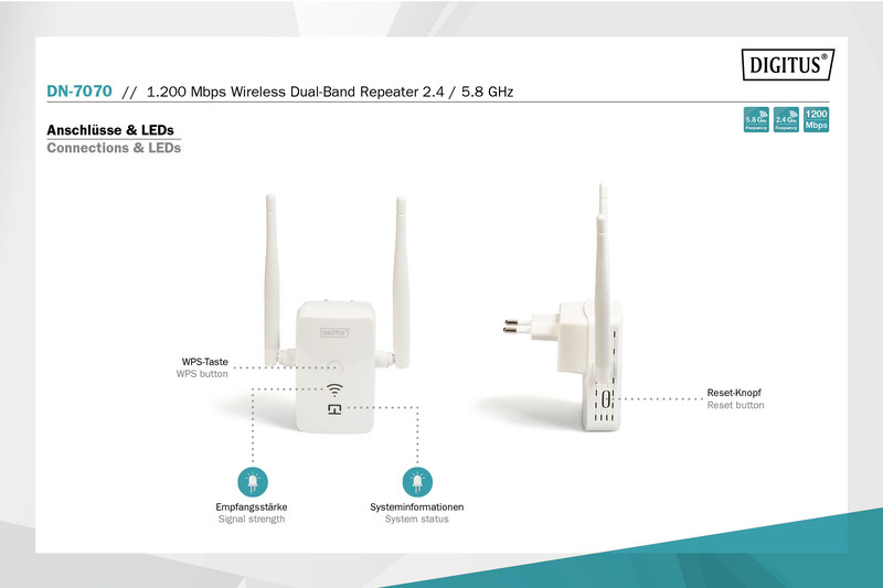 DIGITUS Bezdrátový opakovač 1200 Mb/s 2,4 / 5,8 GHz, WPS
