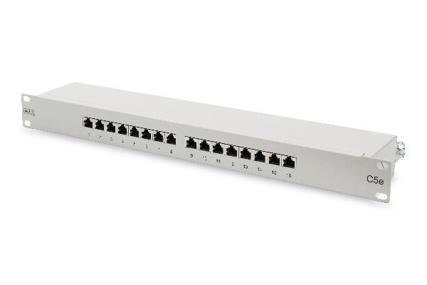 Stíněné panely CAT 5e Patch od společnosti DIGITUS® jsou k dispozici ve verzi 16 nebo 24 portů. Vyhovuje normám ISO / IEC 11801 a EN 50173. Skříň je vyrobena z pozinkované oceli válcované za studena z 1,5 mm, a proto je dokonale vhodná pro montáž na 19 "stojany.