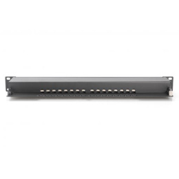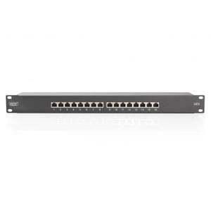 DIGITUS CAT 6, patch panel třídy E, stíněný, 16 portů RJ45, 8P8C, LSA, 1U, montáž do stojanu, černá, 482x44x109