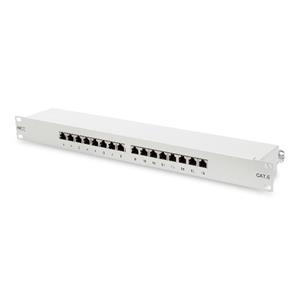 Digitus CAT 6, patch panel třídy E, stíněný, 16 portů RJ45, 8P8C, LSA, 1U, montáž do stojanu, šedá, 482x44x109