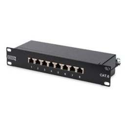 Digitus CAT 6, patch panel třídy E, stíněný, 8 portů RJ45 8P8C, LSA, 1U, 254 mm (10 "), montáž do stojanu, černá