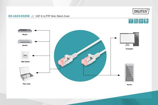 DIGITUS CAT 6 U-FTP slim patch cord, Cu, LSZH AWG 28/7, length 0.25 m, color grey