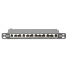 DIGITUS CAT 6A, propojovací panel třídy EA, stíněný, 12 portů, 0,5U, 10 ", černý
